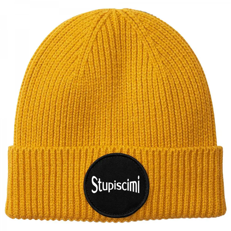 Ribbed knit beanie, single layer, dome designed for maximum comfort, with circle patch in twill cotton. Product Features: Knitted cap Material: 52% recycled polyester, 47% acrylic, 1% elastane Size: Unisex/One Size